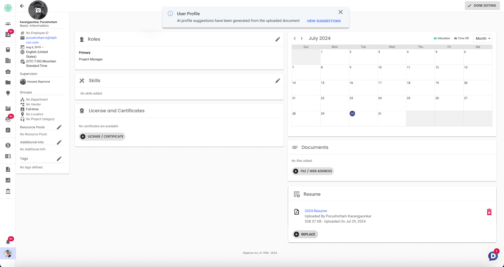 This was a highly requested feature from several clients that were having trouble allocating resources effectively because of incomplete profiles. This way the user can do it quickly and easily leading to better resource allocation. There is time and money saved.