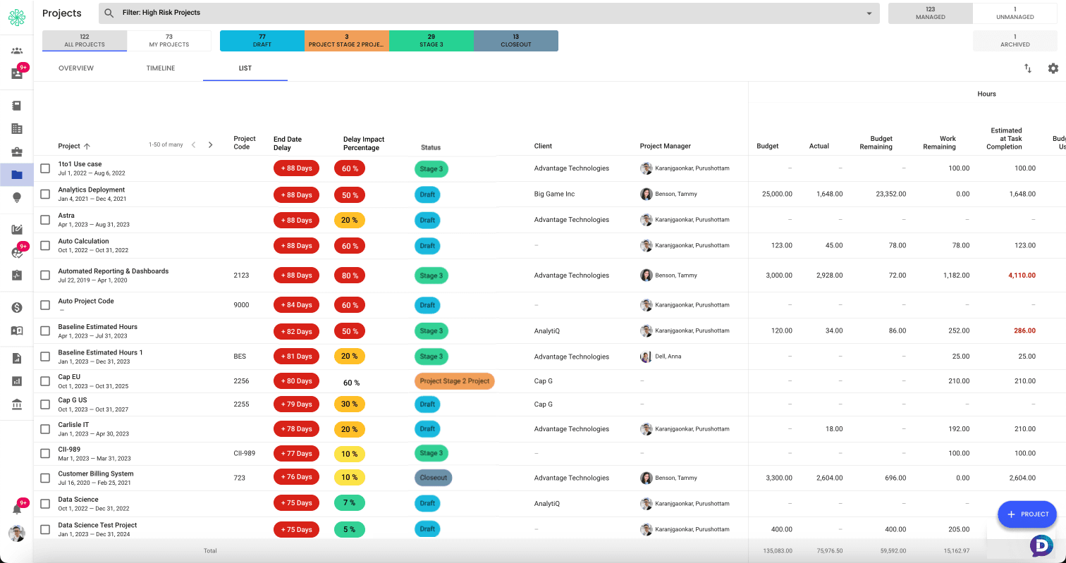 I wanted to make it discoverable, so I added a Project Analytics card where once you click in to a delay category, will take you to a filtered list of those projects.