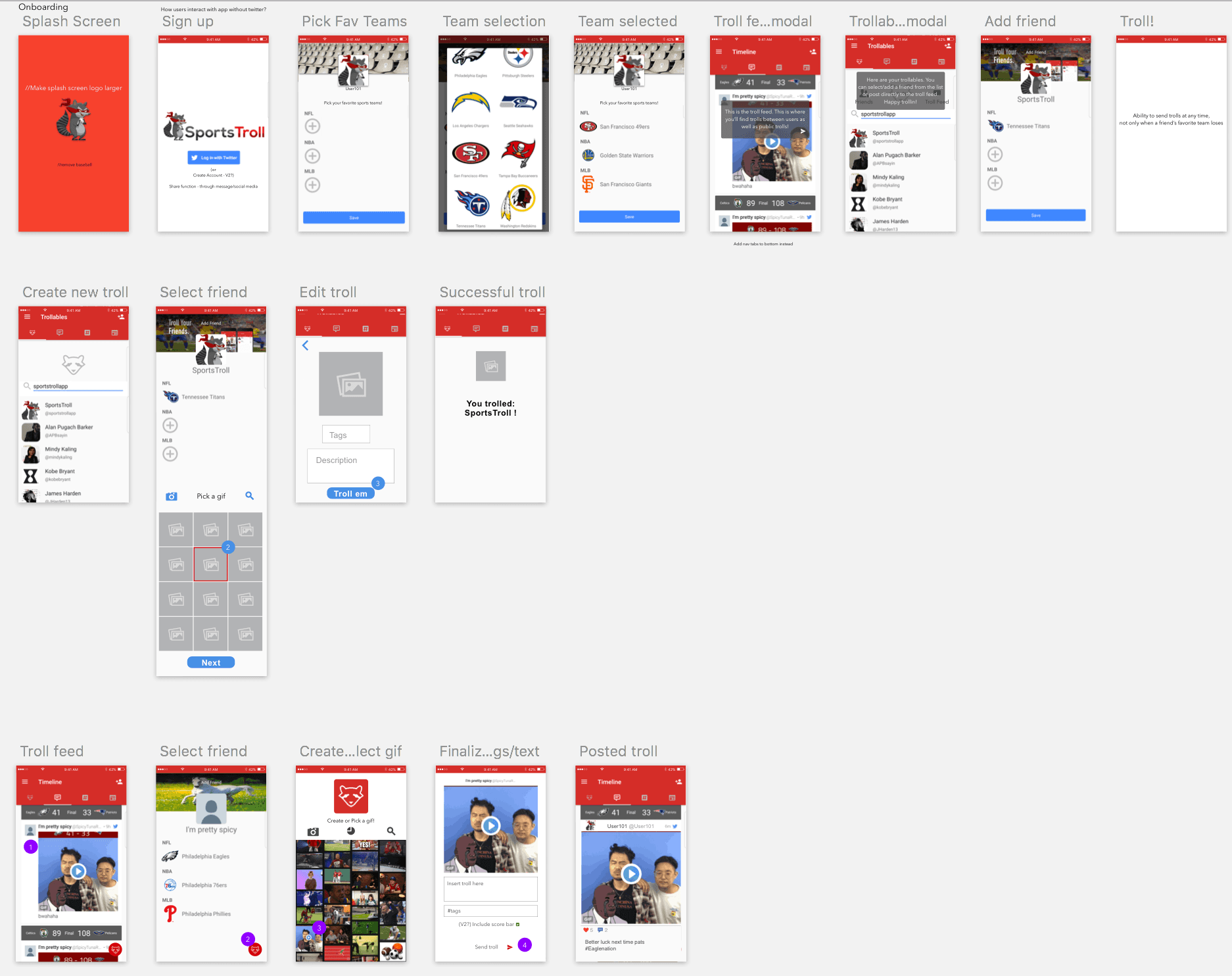 These are wireframes for the new user onboarding, create new troll, and a feature I designed call “troll anywhere”.